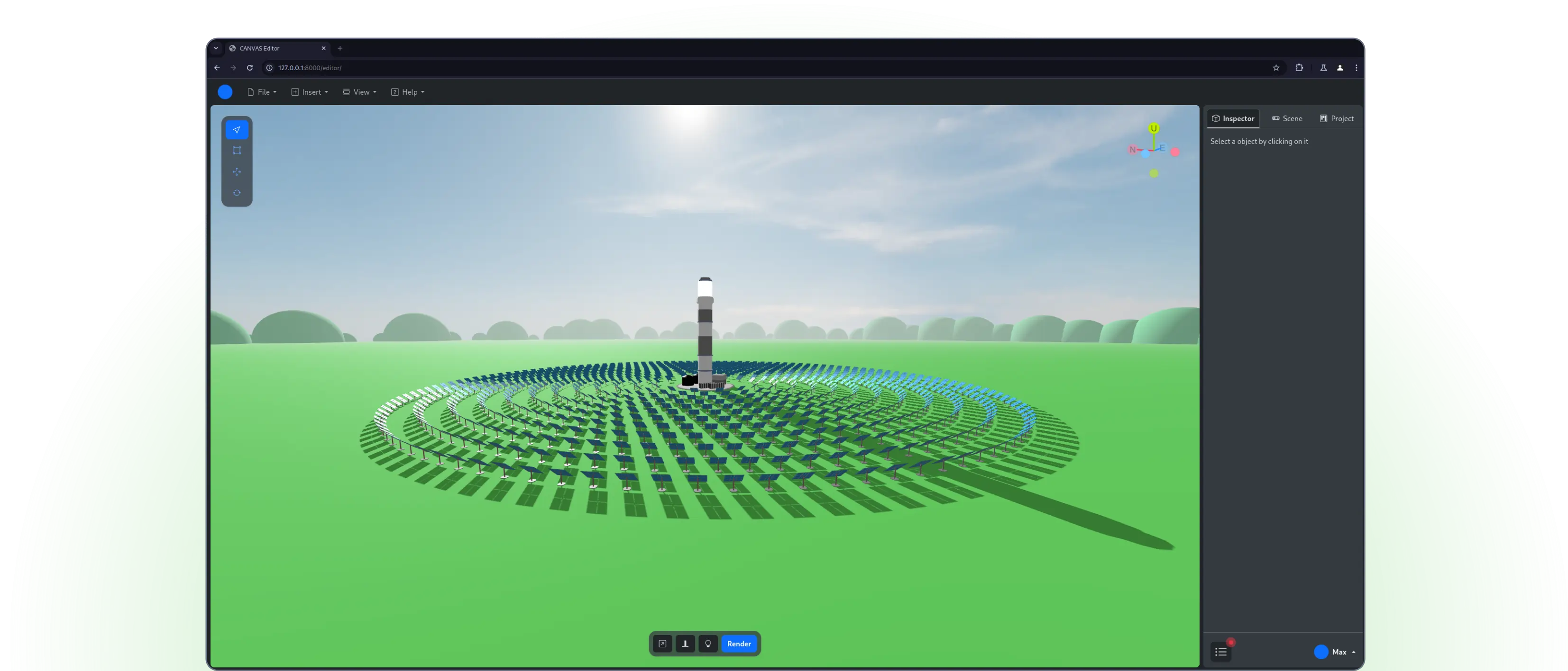 A web-based 3D editor for a digital twin of a concentrated solar power plant.
